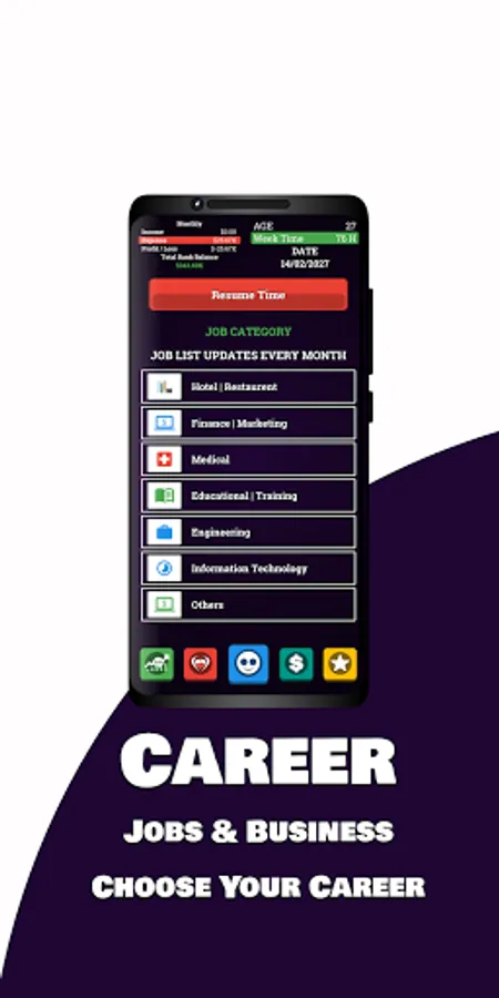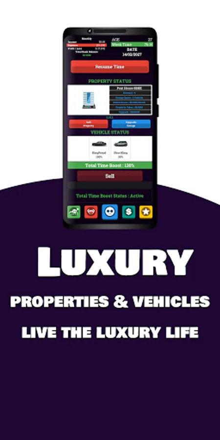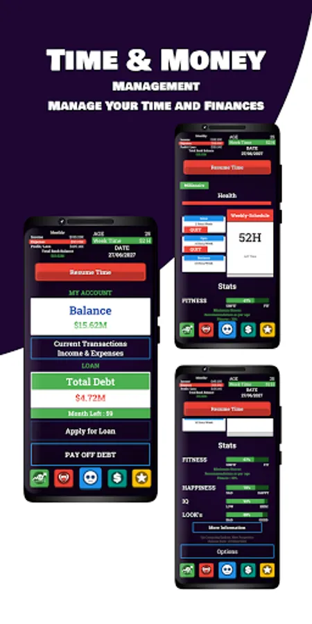 Players have 80 hours per week. How you manage those hours to make money is the challenge. So use your time wisely, or you'll go broke. Just like in real life, you have to take care of your stats like health, fitness, Happiness, looks & IQ. Almost every action you take in this simulator will affect those stats & those stats will affect the life-quality