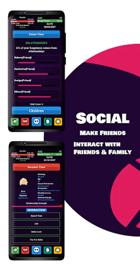 - IQ & LOOK's: These stats help you in social & career aspects in simulation.
