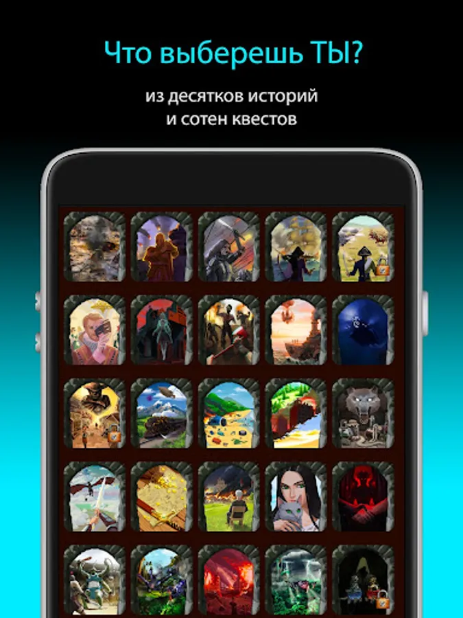 At the moment, the application contains dozens of stories, consisting of hundreds of quests of various genres, such as western or post-apocalypse, fantasy and fantasy, the Middle Ages and horrors, you will find adventures for every taste!
