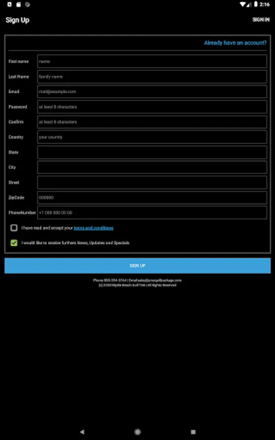 - View your golf tee times and courses