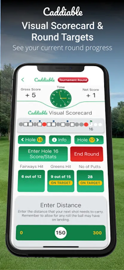- Set Round Targets (Score, Fairways in Regulation, Greens in Regulation & No of Putts per hole)