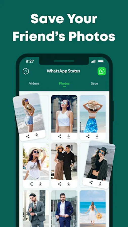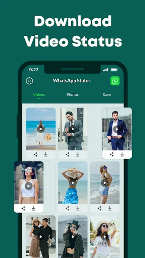 The main feature of this is you can download any status without a watermark and it saves all statuses in your phone memory.