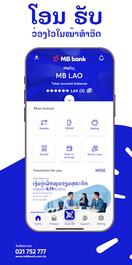 MB Laos is an online banking app that allows customer to conduct transactions from anywhere at anytime. Driven by technology advances, MB Laos is available for iOS, android and able to efficiently operate on device connected to the Internet.