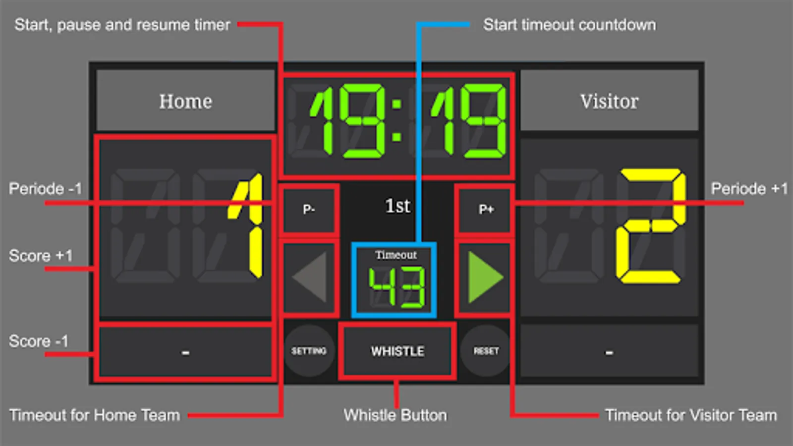 Is a scoreboard application for field hockey matches. Easy to use, design is subject to the needs in a field hockey match.