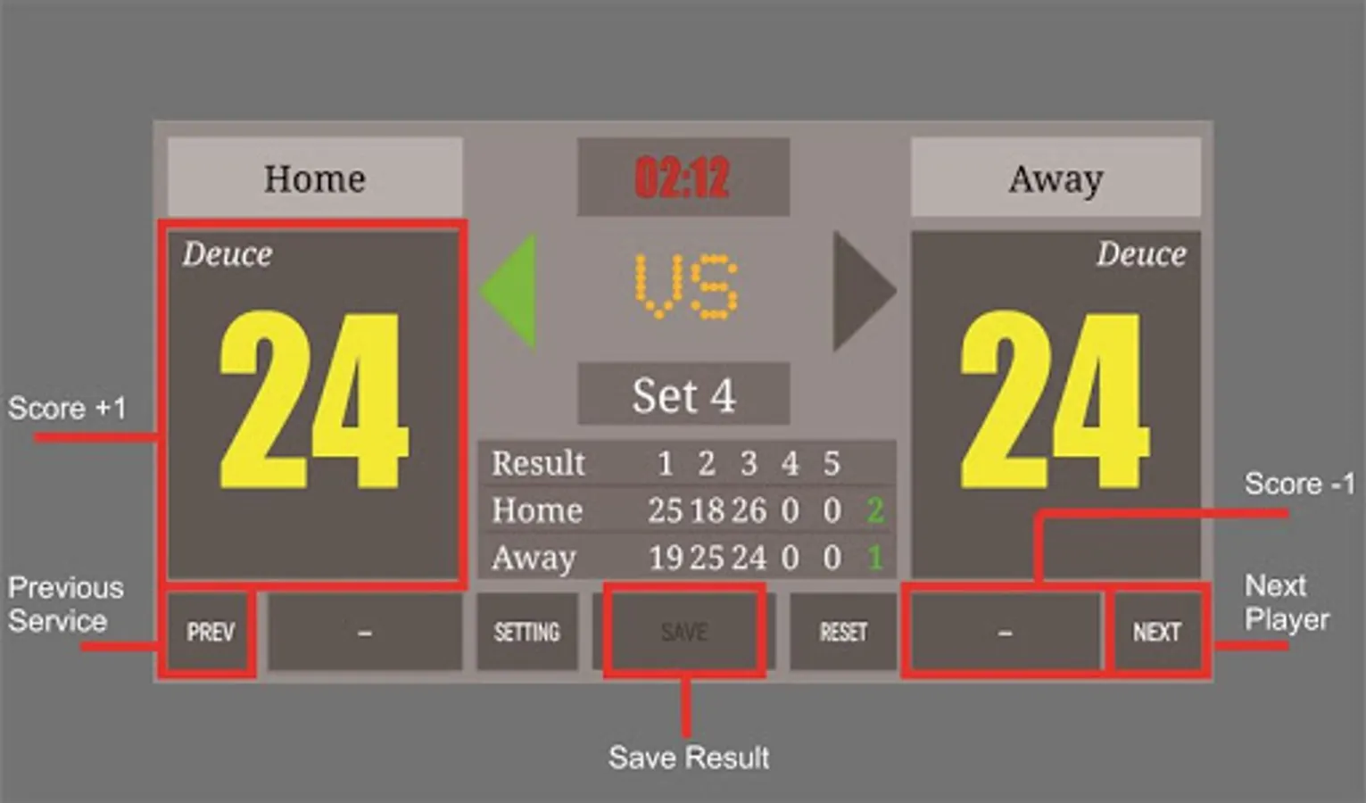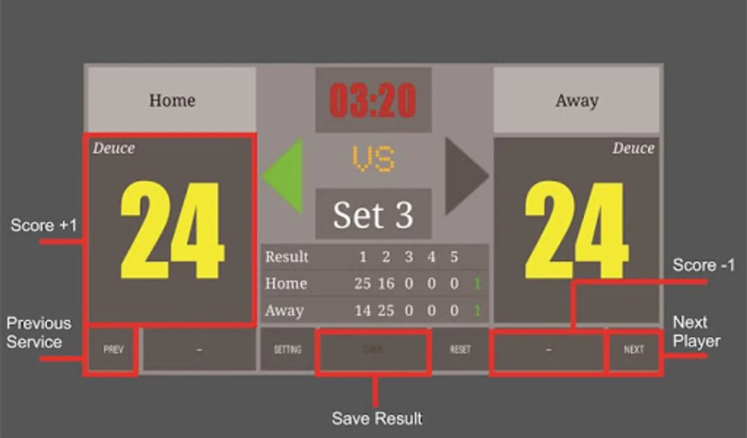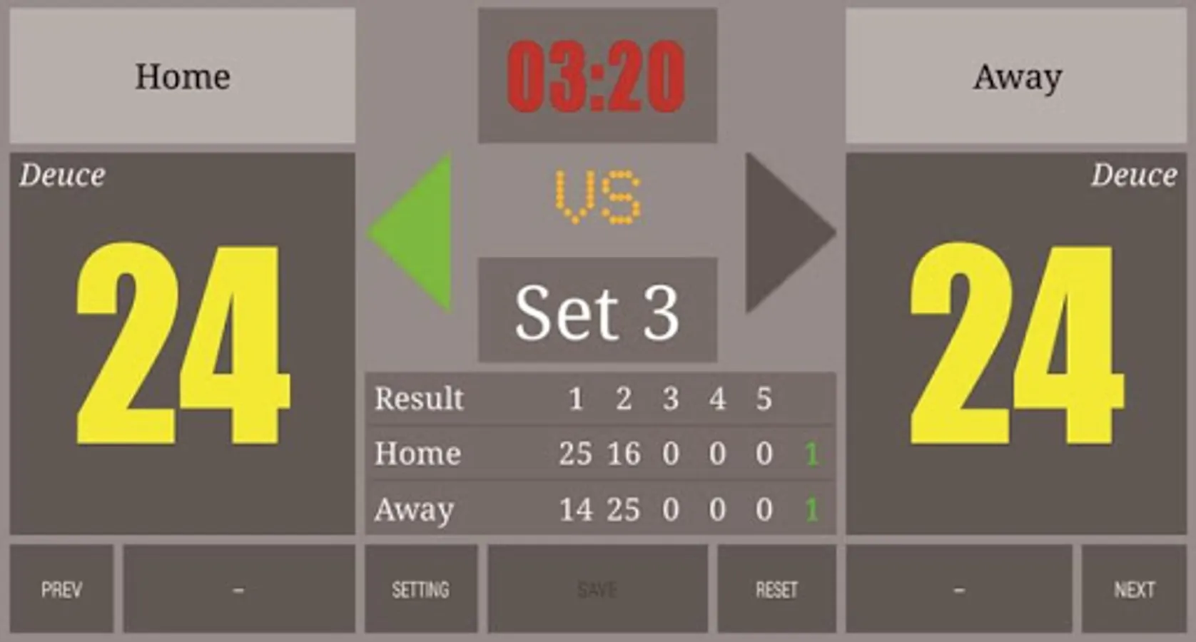 Is a scoreboard application for volley ball match. Easy to use, design is subject to the needs in a volley ball match. This application is available for tablets.