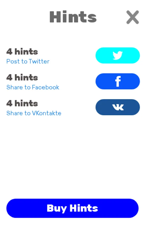 When you can guess a word, you will get some points and extra playing time for searching some other words, and you will get bonus points when you unlock any level! If you unlock some words and you can't guess anything else, you can press the "help" button and you will be helped to reveal a hidden word.
