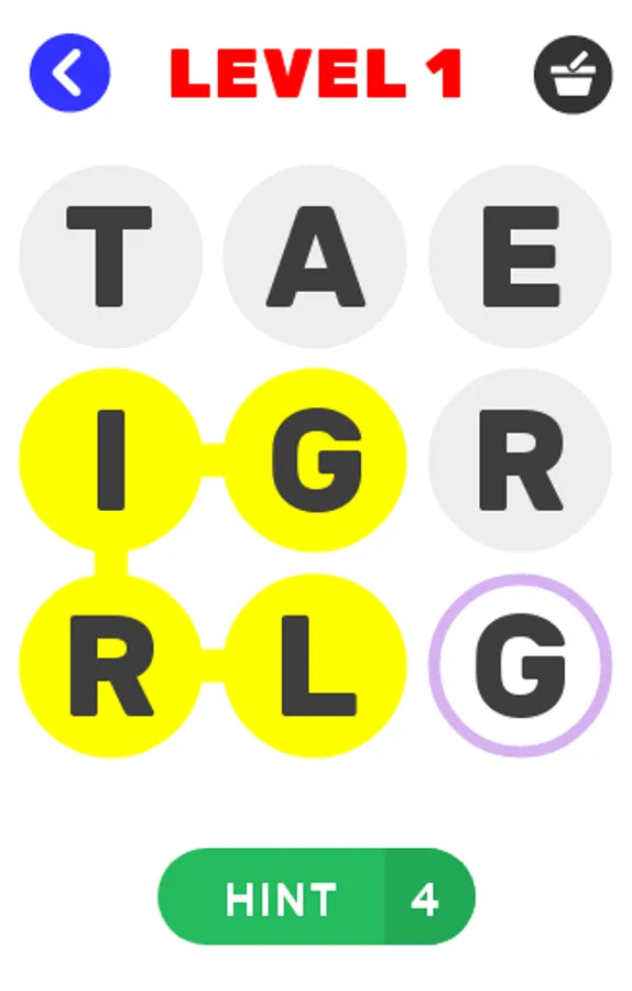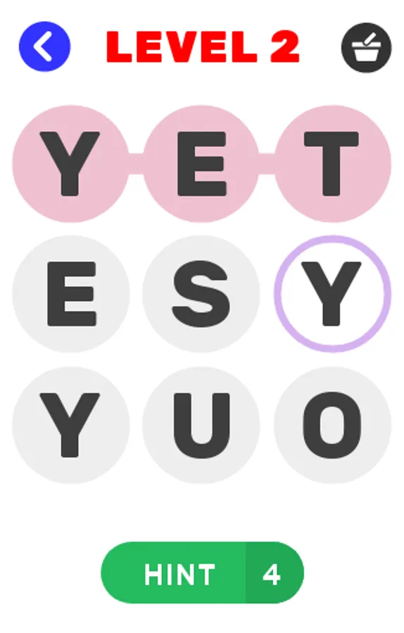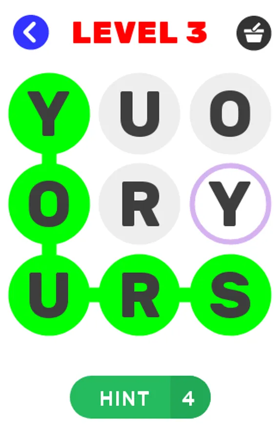 Find Word English Words game features the most common and most used English words of the day. This is the best game for native speakers and for those who want to learn and improve their English in a non-boring way.