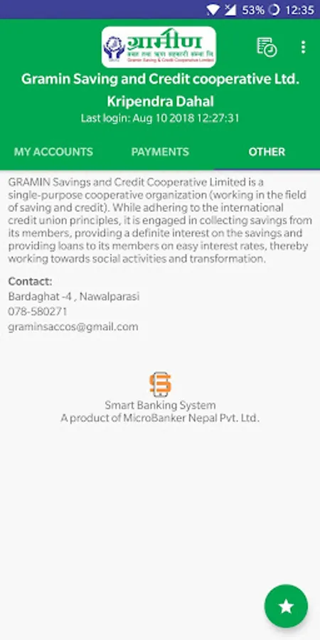 Gramin Balmiki SACCOS Smart Banking allows its registered users to access their account in aconvenient manner. It is secured and is available 24x7. The user can preview their balances, statements, request cheque book, transfer fund and online payments such as mobile topups and internet payments.