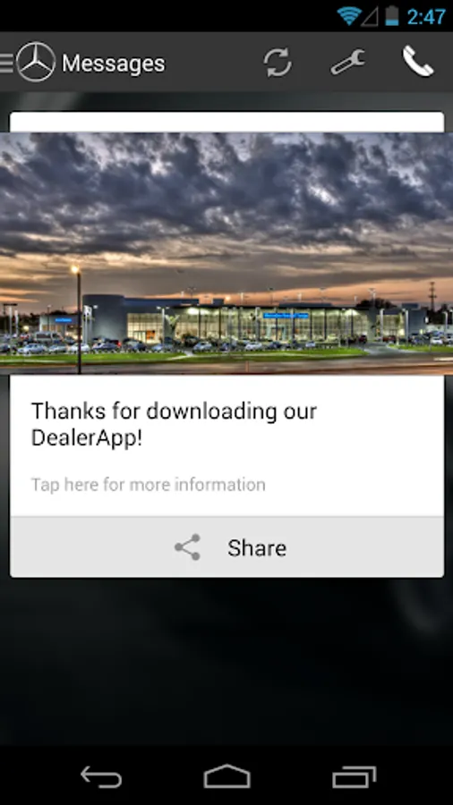 In addition, all the standard Dealership App features are also here like: Call and email each department, get directions, view operating hours, get quotes on vehicles, order parts, etc etc…