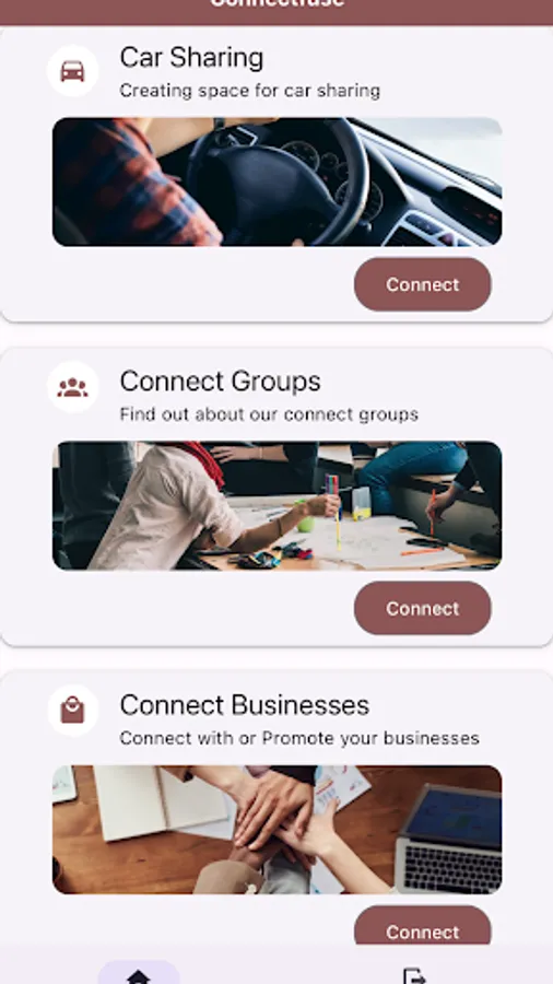 ConnectFuse is an app for organisations including churches to create connections within their trusted community. Following admin approval members of members of a trusted community, members can use to app to arrange car lifts to a destination. E.g church members can use the app to both request for a lift as well as to arrange offering someone else a lift.
