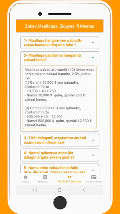 - Dahaba (Ziqaya) fi Meeta (Qarshii) qabdurraa zakaaf meeqa baasuu akka qabdu beekuufi