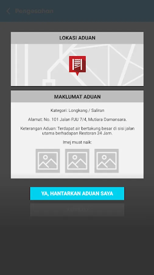 membuat aduan sekitar kawasan Petaling Jaya sahaja.