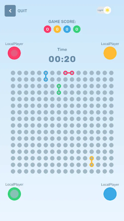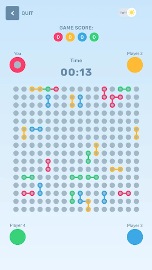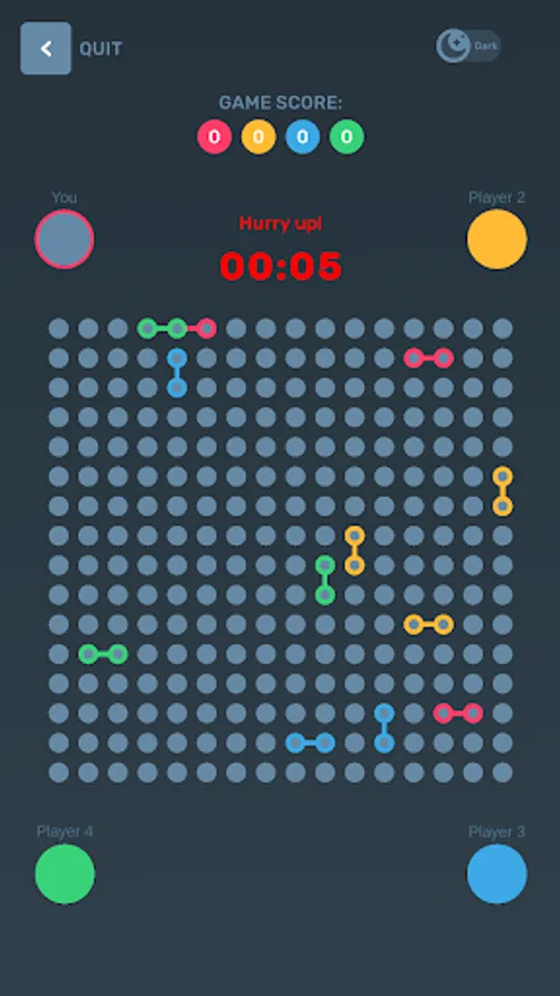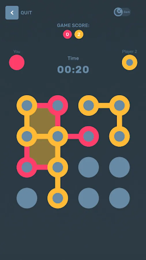 A mobile version of the classic pencil and paper game, 'Dots and Boxes'. Game supports 4 player local matches, online matches, and matches with intelligent bots with varying degrees of difficulty.