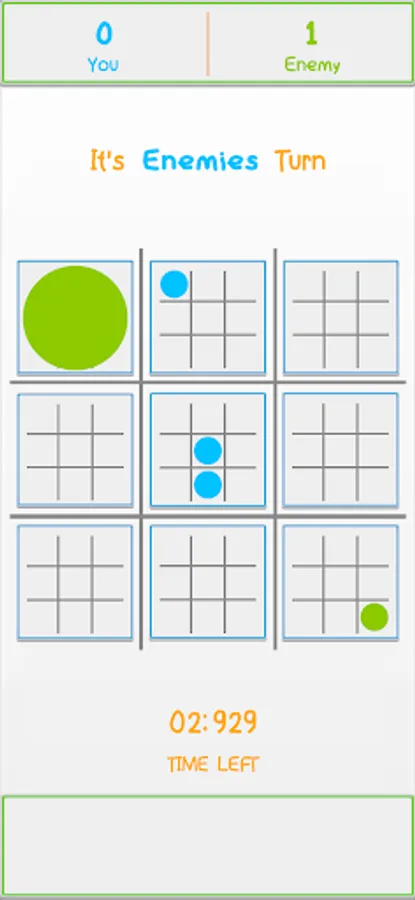 Conquer three boards in a row to win! Welcome to the world of Tic Tac Toe Ultimate. Throw in a time component and now you have Tick Tock Toe Ultimate.