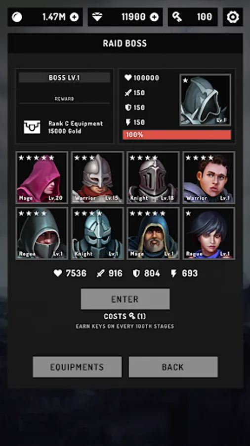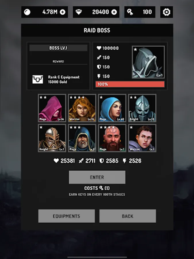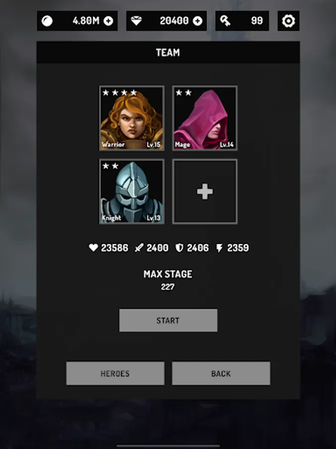 Moonlight Quest is an Idle Incremental RPG with infinite progress and ultra-fast battle! Defeat all the Monsters and Bosses, go up the stages, collect Gold and upgrade your Heroes!