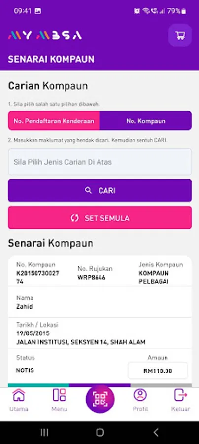 3. Paparan resit dan cetakan cagaran.