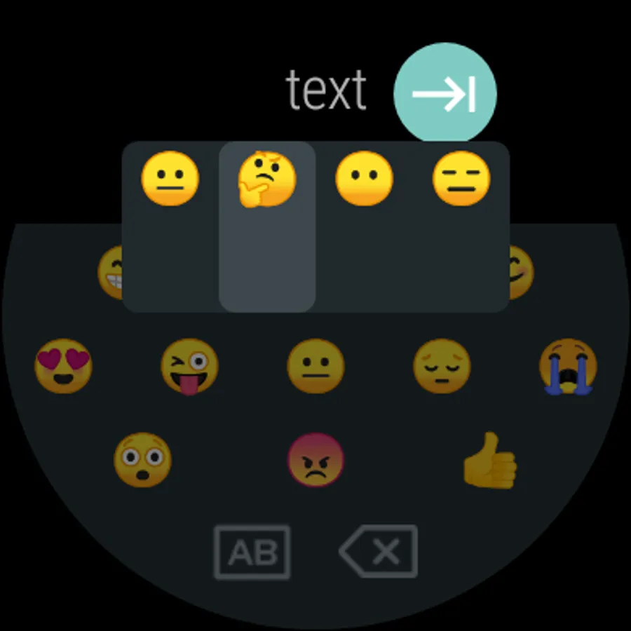 MultiTap Wear Keyboard supports both multi-tapping and long-pressing keys.