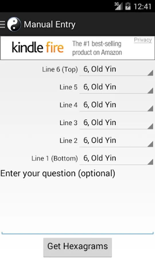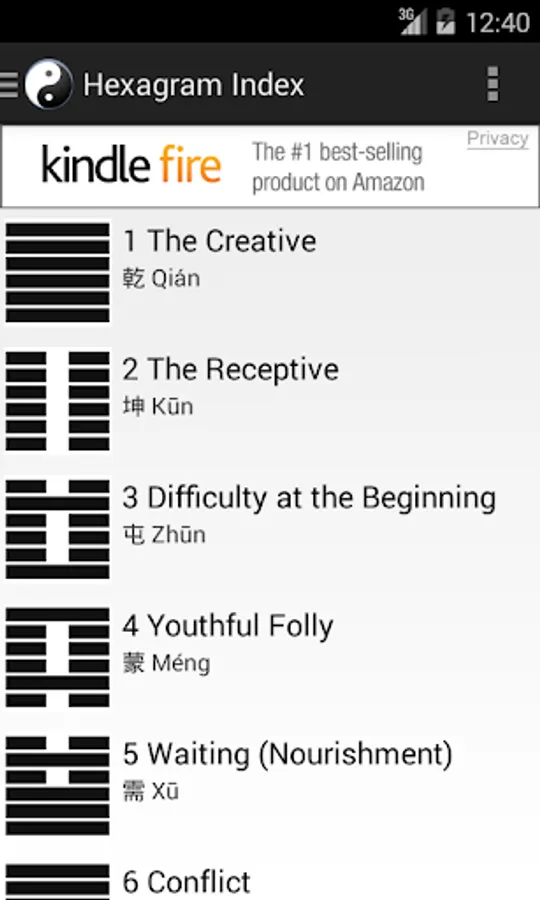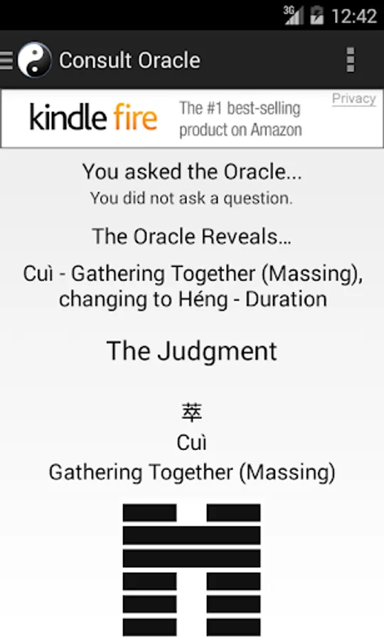 The I Ching has been a source of wisdom and divination for thousands of years and is now available in this convenient, easy-to-use app. You can use the app's built-in digital Oracle which faithfully reproduces the yarrow stalk, three coin, or four coin methods of divination (Consult Oracle) or you can manually do your own divination and then enter the results (Manual Entry). You can even save the divinations for future reference (Saved Readings). There's also a handy reference for the Hexagrams and Trigrams (Hexagram Index, Hexagram Lookup, and Trigram Reference) which allows you to browse the complete I Ching at your convenience.