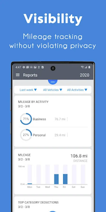 Easily track your mileage for vehicle reimbursements, the FAVR program, mileage allowances, and company cars.