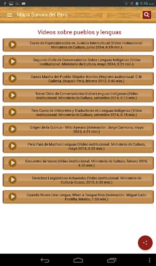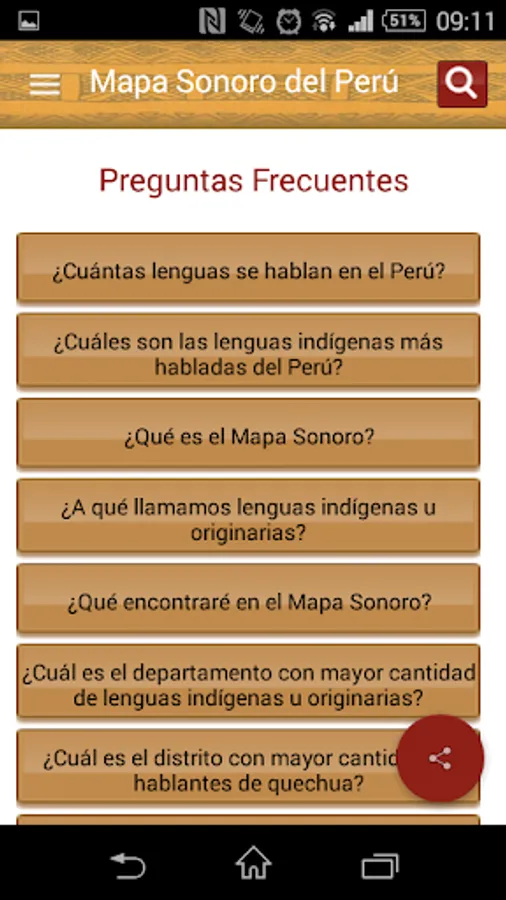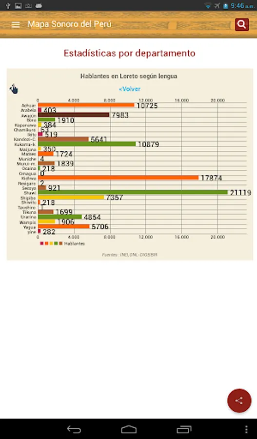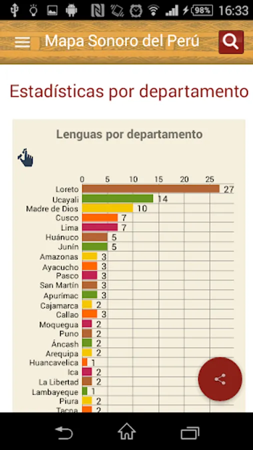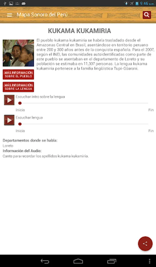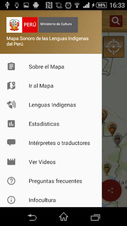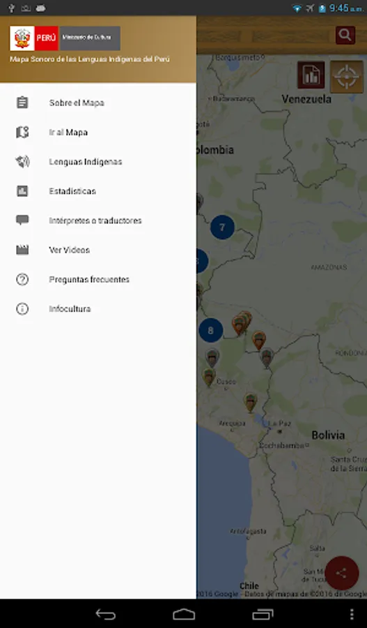 The Sound Map is an initiative of the Ministry of Culture, through the Bureau of Indian Languages, to provide official and updated information, interactively, on indigenous or native languages of the country to all persons interested in learning more diversity cultural and linguistic Peru. This being a tool for both schools, universities and other stakeholders, as well as for officials from different institutions that perform actions, interventions, programs and projects with speaker of an indigenous or native language of the country population.