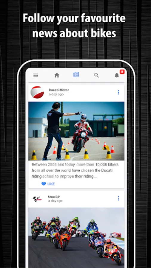 • Upload your marvelous bike picture and get tons of likes from other users.