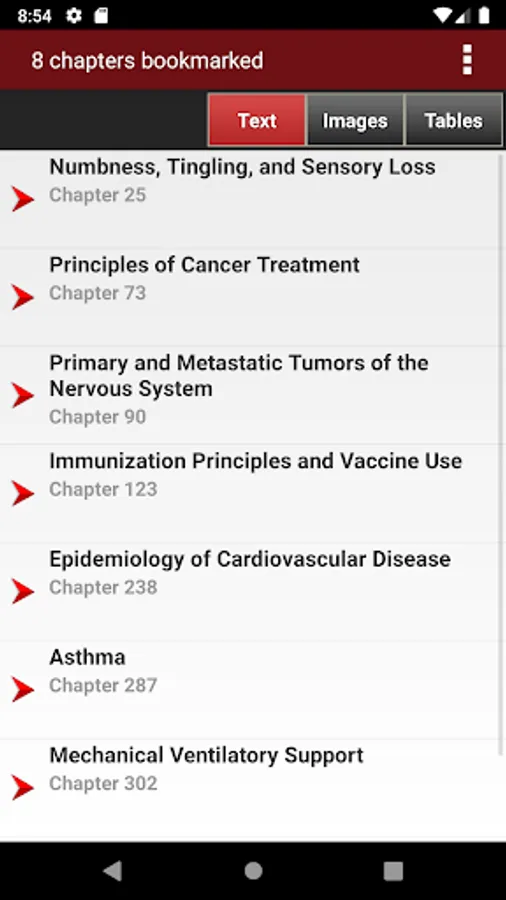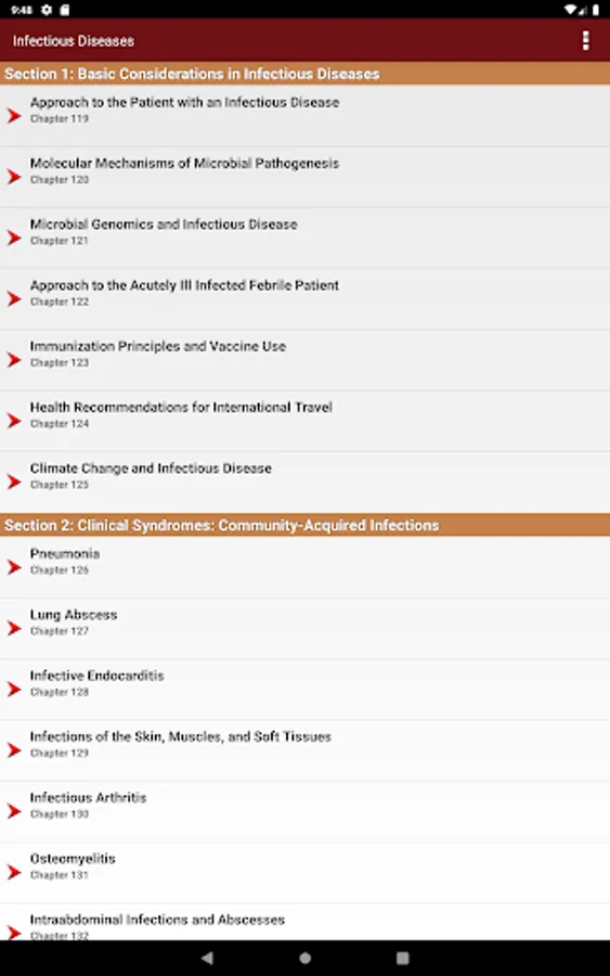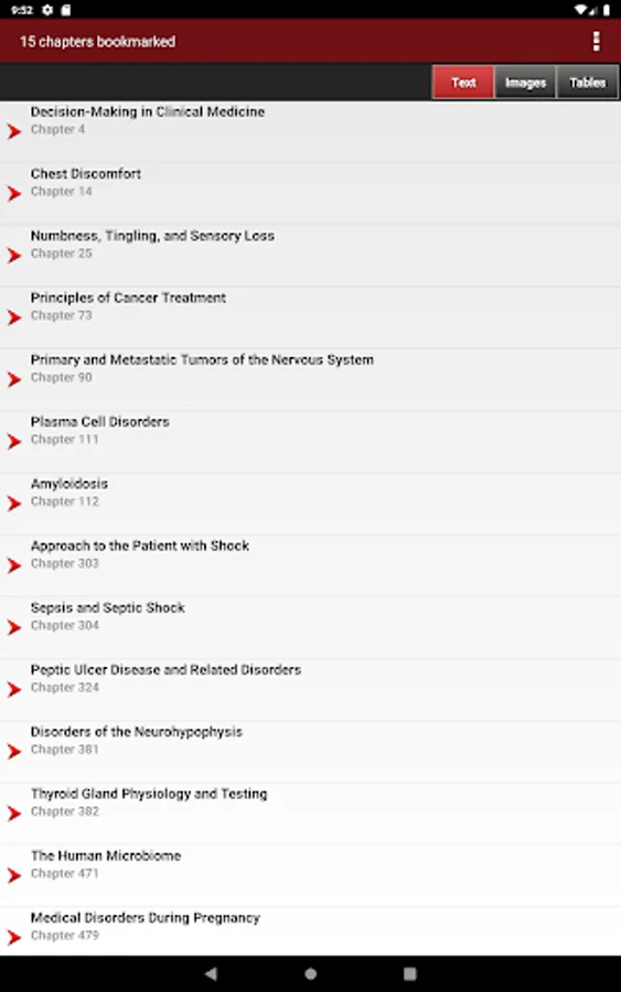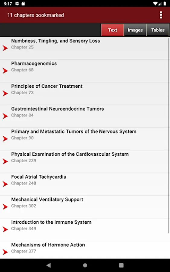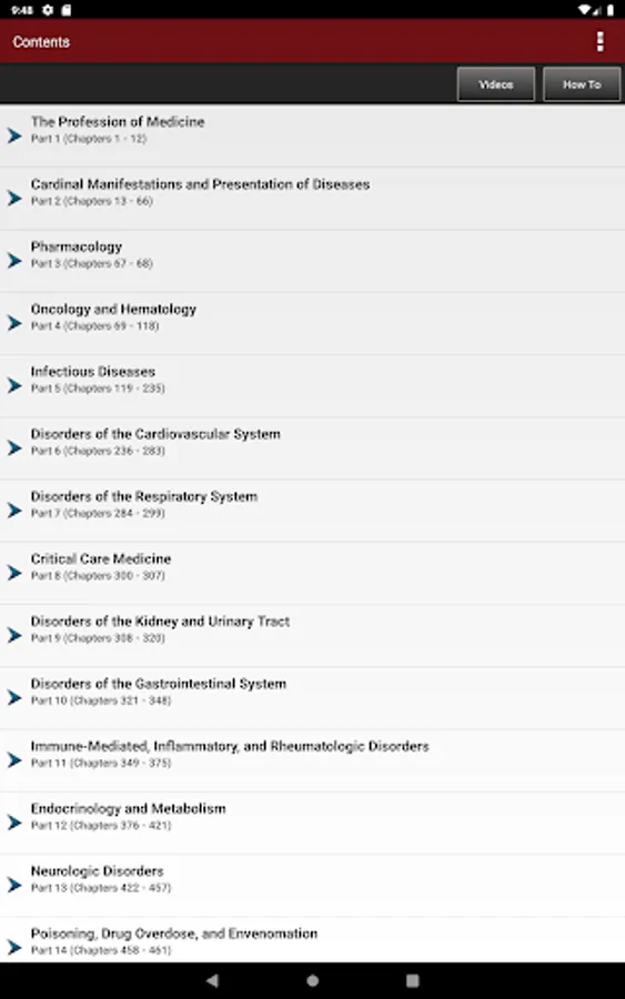 This app is easy to navigate, allowing you to browse the contents or search for keywords and phrases. The search tool will find text, images, tables and videos with one single fast search. The search tool shows you suggested words as you type so it is quick and helps with spelling issues. You can also creating bookmarks, notes, highlights, and change the text size for easier reading.