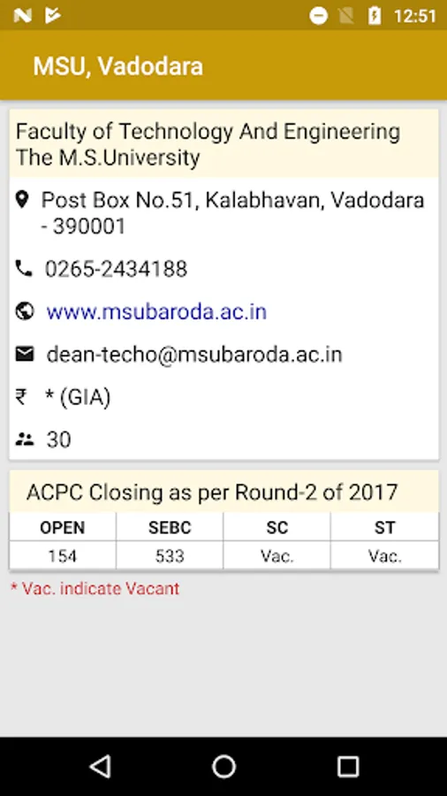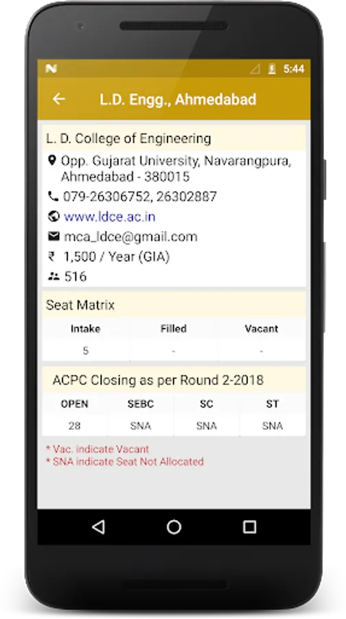DISCLAIMER: This is not an official App of the Admission Committee for Professional Courses, (ACPC) (http://www.jacpcldce.ac.in). All the data we are using in the app is publicly available on the website http://www.jacpcldce.ac.in/mba.asp. MCA Admission App provides useful information for MCA Admission. We do not represent the MCA Admission Committee, Gujarat.
