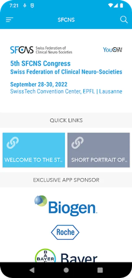 This app supports participants and exhibitors to navigate through the 5th SFCNS Congress 2022, which will take place from September 28-30, 2022 in Basel.