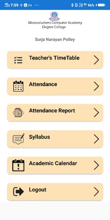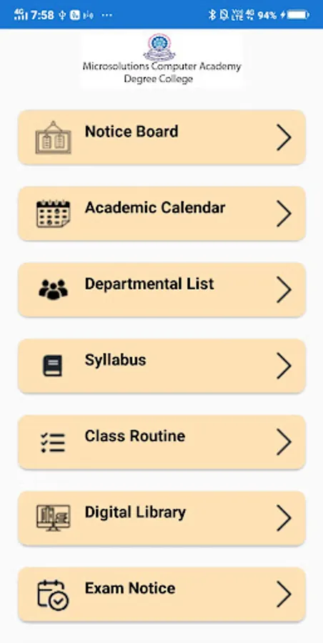 College App of Microsolutions Computer Academy Degree College for Students/Parents and Teachers. Students can view Notice Board, Academic Calendar, Departmental List, Syllabus, Class Routine, Attendance Percentage and so on. While the Teachers can see their individual Class Routine, Take Attendance, view attendance report and so on.