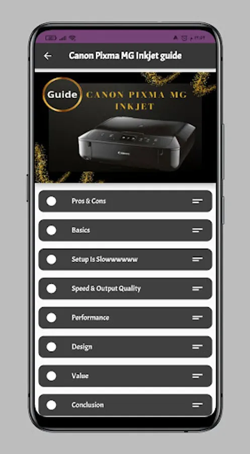 Canon Pixma Inkjet Printer Guide App Contents:-