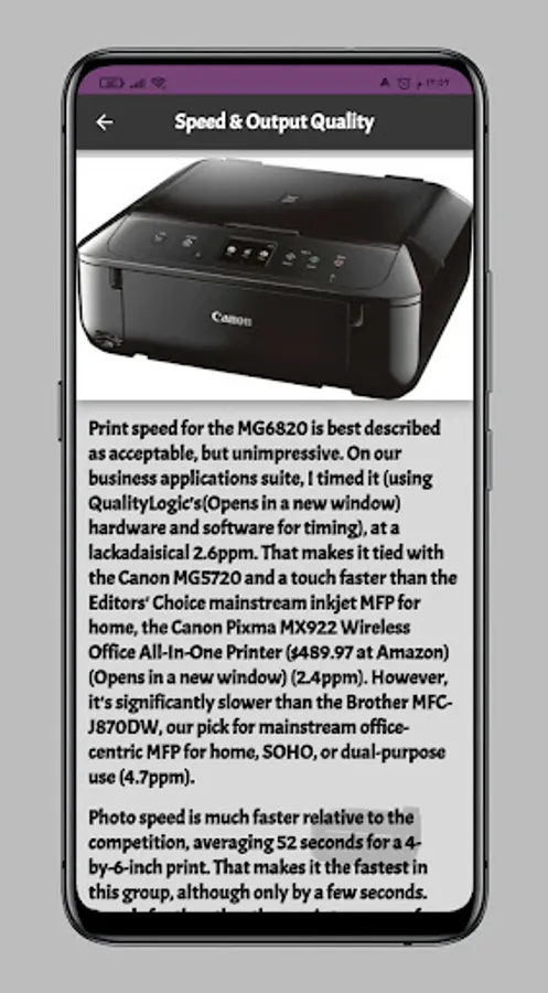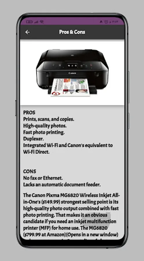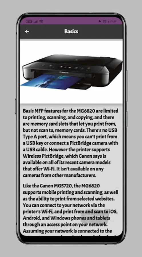 Canon Pixma Inkjet Printer app that gives you information about Canon Pixma Inkjet Printer Canon Pixma Printer features