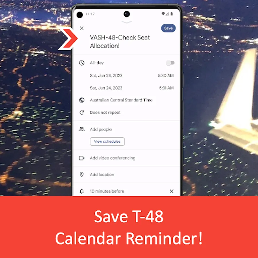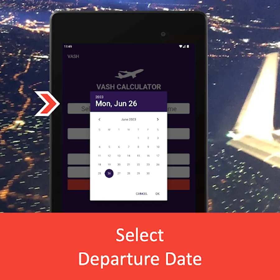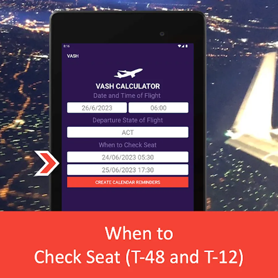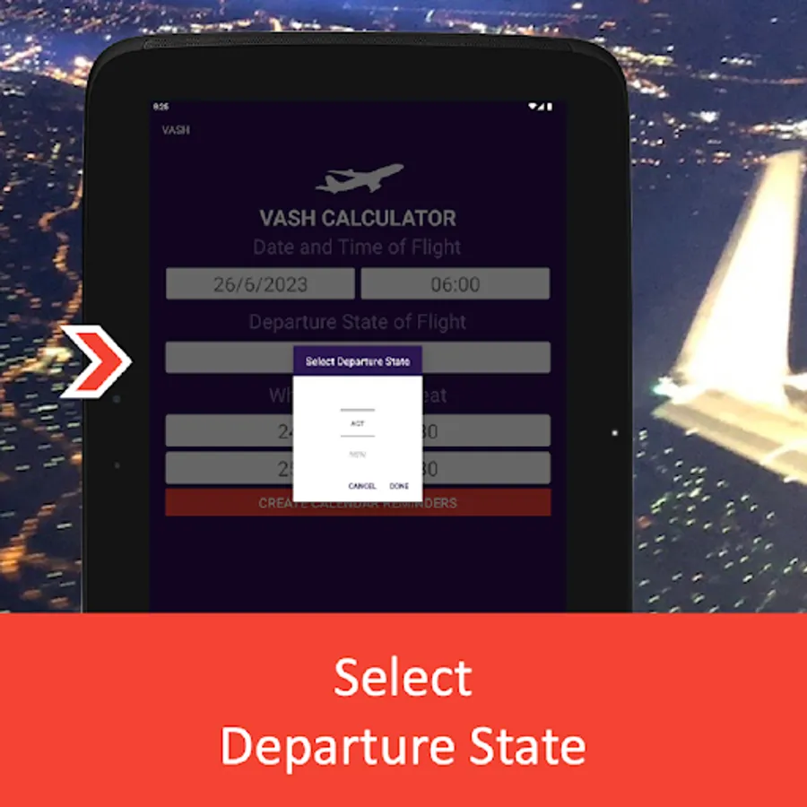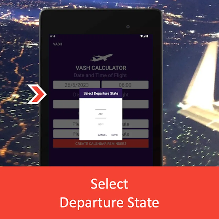 Note, the VASH APP uses your devices current timezone to present the calculated VASH (T-48) and VASH (T-12) date/time's based upon the departure state's timezone of your selected flight. Additionally, the APP will also take into account any daylight saving differences between your current timezone and the departure state's timezone.
