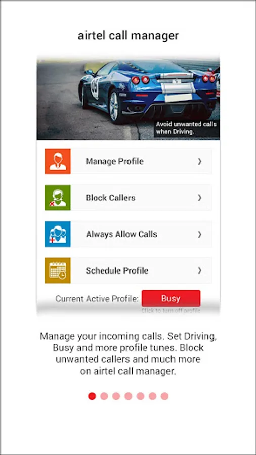 When you are busy to take your incoming calls, Call Manager manages your calls with your current status i.e. Driving, On Holiday, In Meeting, On Leave, etc. the callers will hear the profile announcement and you will receive Blocked Call SMS alert.