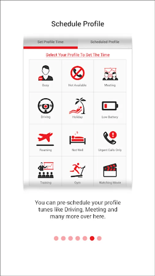 • Manage Profile- User can set and change any profile like Meeting/ Driving/ Not Available/ Busy and more at any time.