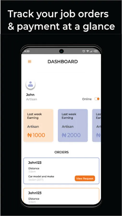 Mcare Artisan App provides verified and certified Artisans the opportunity to onboard and get job request from users (drivers).