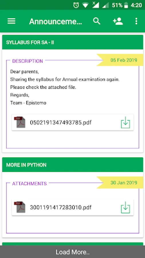 MyClassboard provides communication app for parents using which they can download school announcements, Class assignments, Events.