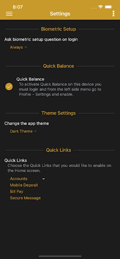 **Some features must first be setup from the online banking site before they can be used on the Mobile App.