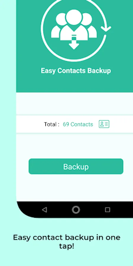 Easy Contacts Backup app allows taking backup of your contacts in one tap! Easy to send backup (VCF file) as an email attachment and store them securely.