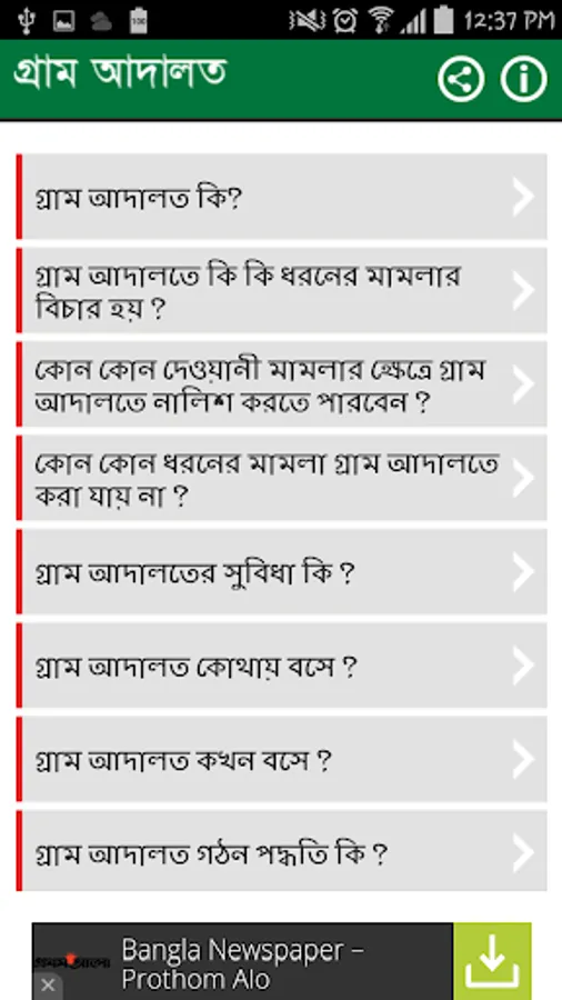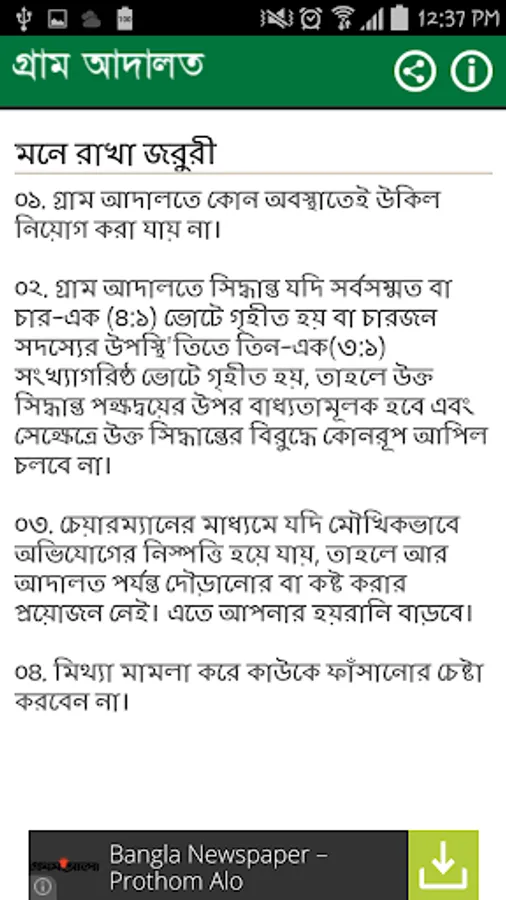 Village court has been established on 1976 to empower women, the poor and disadvantaged groups to seek remedies for injustices, and to enable justice institutions to be responsive to claims. Now a days citizens are resolving their disputes at the local level in an expeditious, transparent and affordable manner through well-functioning village court. This application provides information about village court development process, claim process, laws, punishment law and fees.