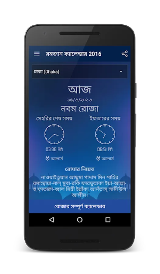 4. Set alarm to get accurate prayers, sehri and iftar timings