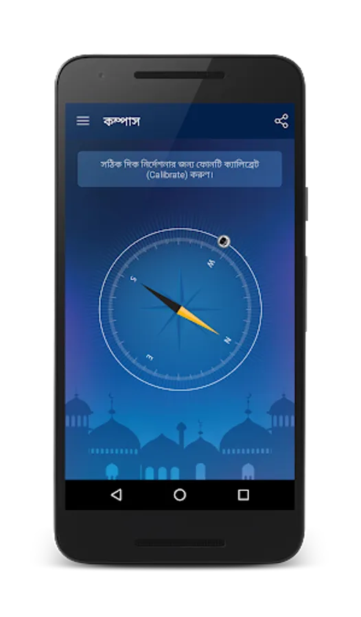 6. A simple and clean Qibla compass showing the direction to face during prayers