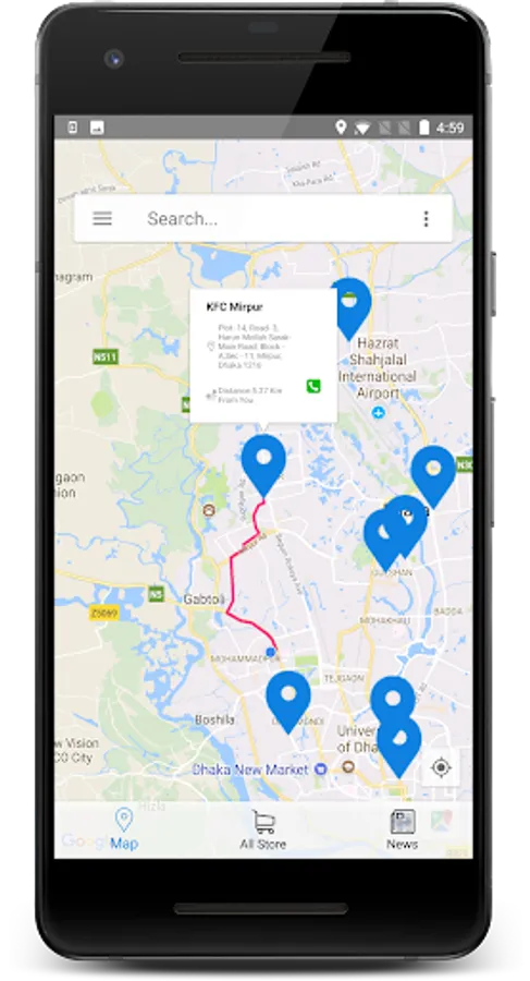 It provides advanced mapping systems that will show different places for a specific store. It would be easy to search nearby stores and navigate in an user friendly way. Initially it will find most nearest points based on current user location. User will be able to find store from a different place using build in custom search facility.