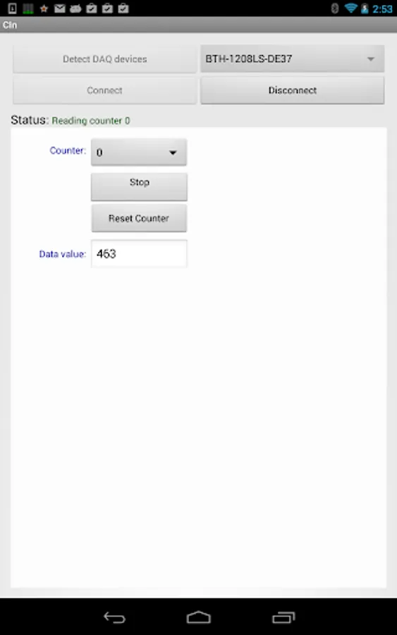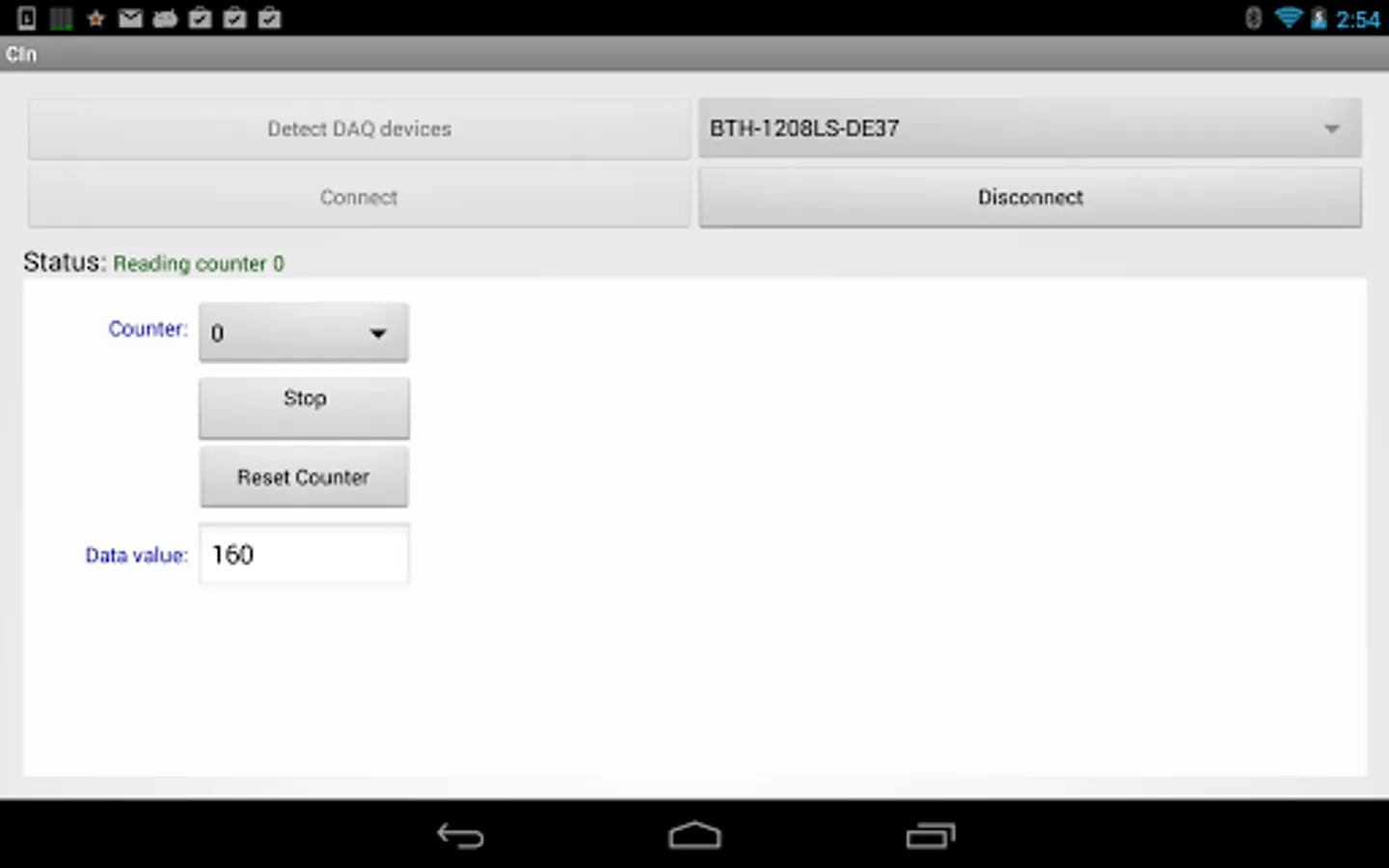 The Counter Input app demonstrates the use of the Universal Library for Android™ API to read a counter on a Measurement Computing (MCC) data acquisition device (USB, Bluetooth or Ethernet).