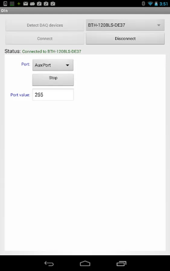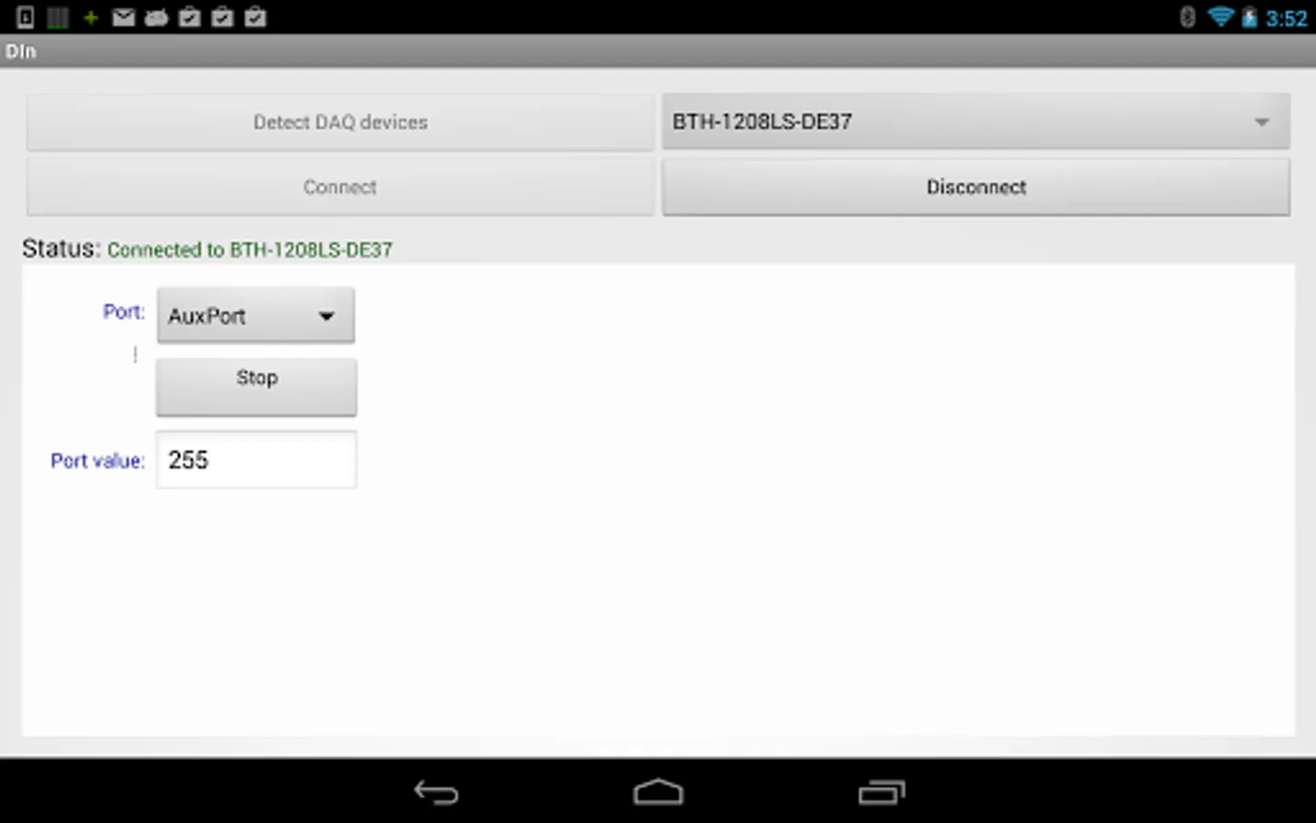 The Digital Input app demonstrates the use of the Universal Library for Android™ API to read a value from a digital port on a Measurement Computing (MCC) data acquisition device (USB, Bluetooth or Ethernet).