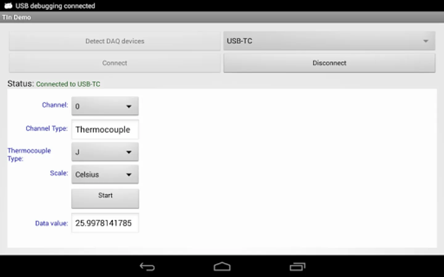 The Temperature Input app demonstrates the use of the Universal Library for Android™ API to acquire temperature data from a Measurement Computing (MCC) data acquisition device.