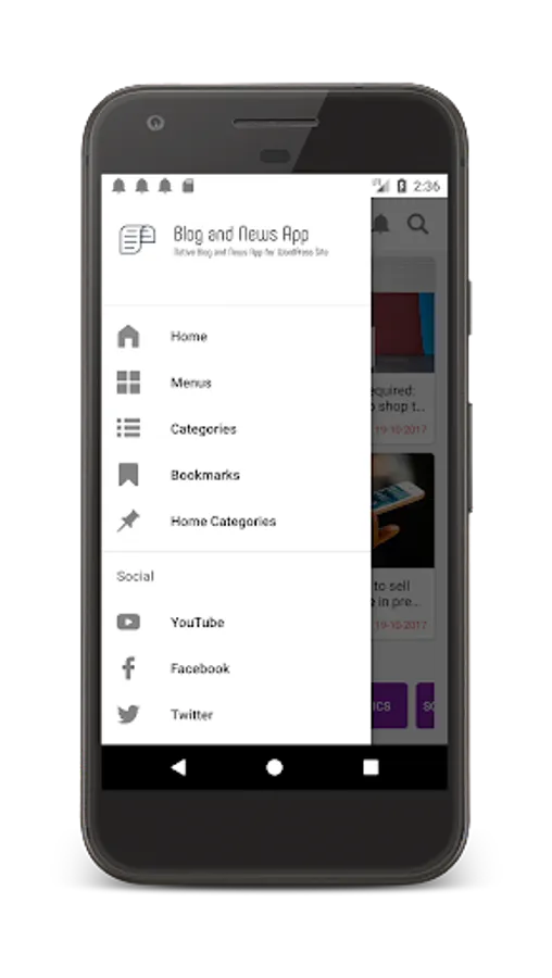This app allows your create native android application for news or blog site. WordPress will be used as base backend. App includes all the features what a complete news or blog app should have.
