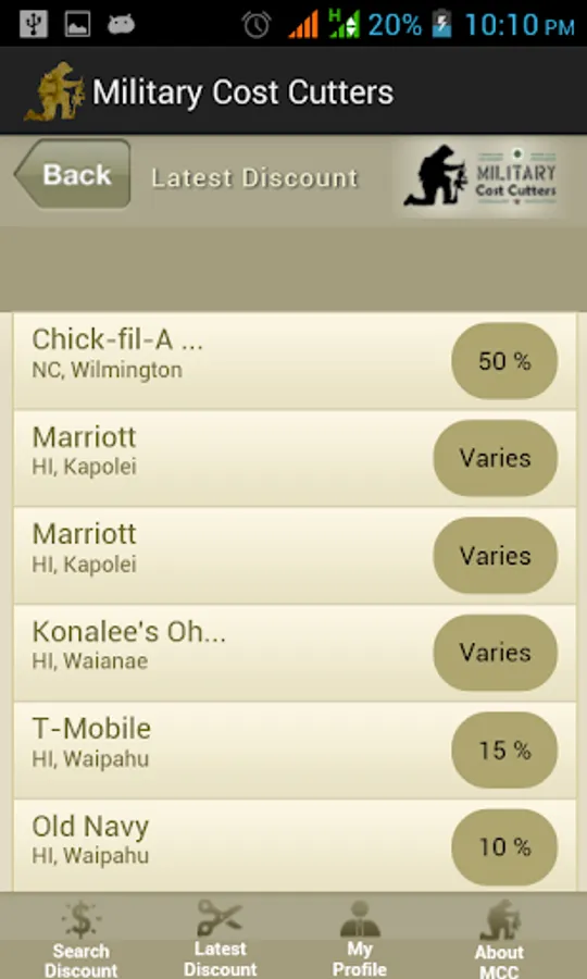 Not in the military but have family members or friends that are? That's no problem, you can still download and share the discounts with those people. Don't wait another minute, start discovering discounts now and perhaps building your own area up by uploading discounts that may not be there now.