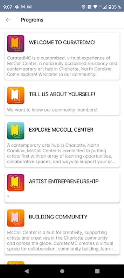 CuratedMC is a virtual way to experience McColl Center, a nationally acclaimed artist residency and contemporary arts hub in Charlotte, NC. Here you will learn about our exhibits, programming, artists, and events as well as find ways to connect. Explore and be inspired!