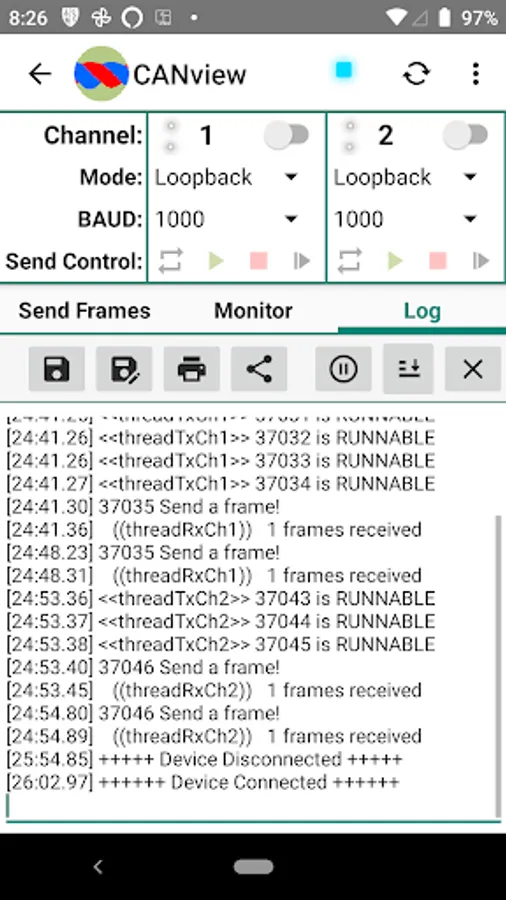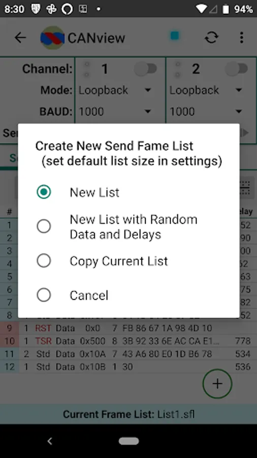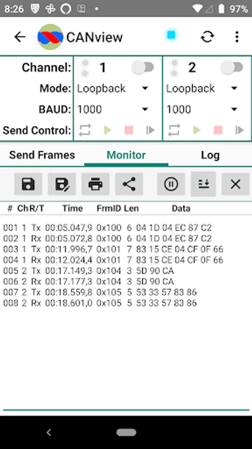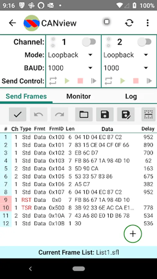 3. Start/pause/resume/stop automatic frame list transmission