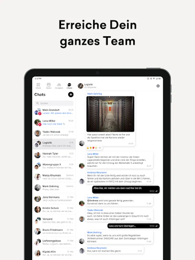 Use the chat to exchange and coordinate with one or more employees of your company.